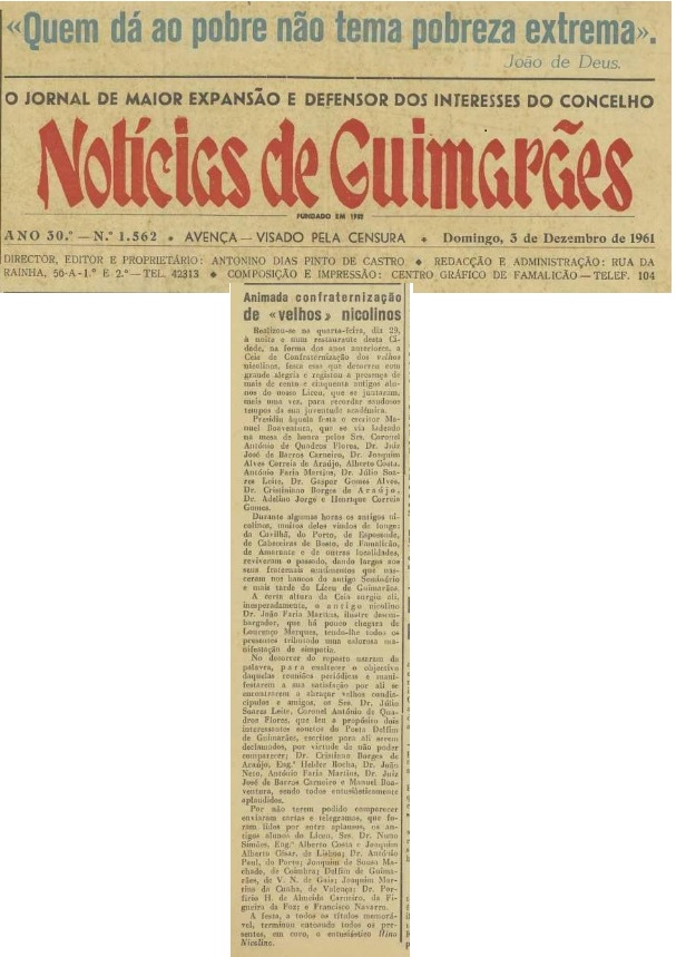 Hoje na noite do Pinheiro a Cidade é tomada por Nicolinos de todas as gerações que em grupos se distribuem pelos restaurantes para refeições previamente marcadas, algumas das tertúlias já com poiso certo.