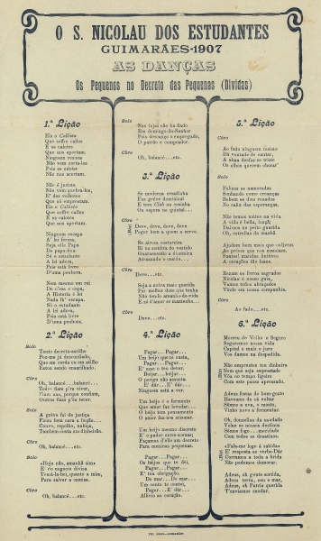 Nas danças de 1912, organizadas pelos estudantes aposentados, ao texto de Bráulio Caldas foi anteposto o seguinte texto, que seria repetido em 1916: