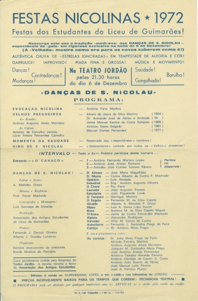 Ficou registado em ata de reunião da Comissão de Festas Nicolinas 1968 que a organização das “Danças” ficaria entregue, neste ano, à responsabilidade do Rev. Padre Sousa com colaboração dos Velhos Nicolinos, com a ajuda do Eng.Hélder Rocha e Manuel da Costa Guimarães.