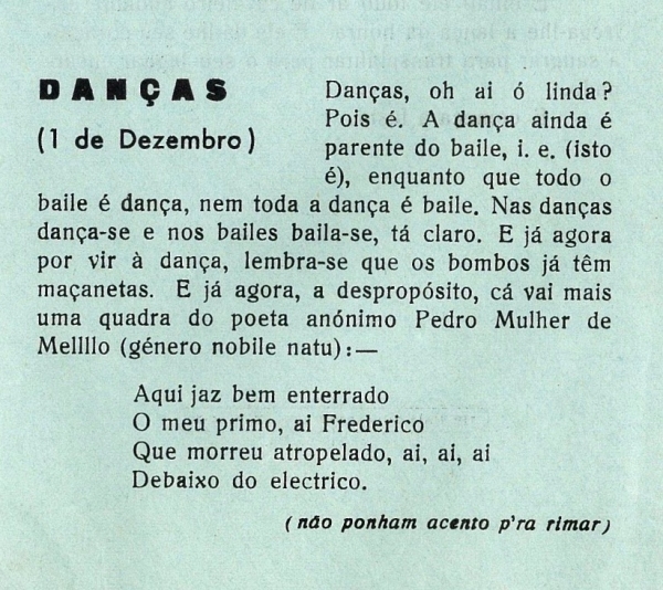 Referência no programa das festas de 1971Recriação das “Danças” da responsabilidade de Meireles Graça (autor das