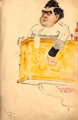O Padre Gaspar Roriz , numa caricatura de José de Meyra de 1905. Da colecção da Sociedade Martins Sarmento.