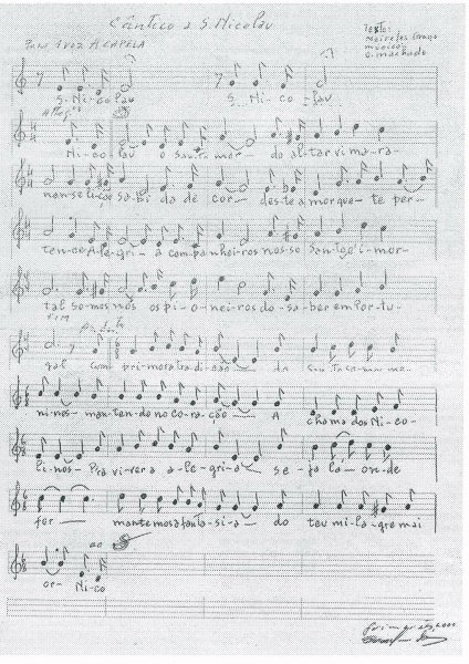 Canto II Nicolau o santo mor Do altar vimaranense Loção sabida de cor Deste Amor que te pertence!