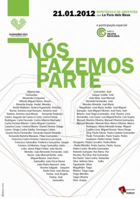 Documento que ficará exposto, por deliberação em reunião de direção, numa das paredes da Torre dos Almadas que servirá de recordação da participação da nossa AAELG/Velhos Nicolinos na cerimónia de abertura da Guimarães 2012 Capital Europeia da Cultura (CEC), no Largo do Toural no passado dia 21 de janeiro. Este espetáculo, da responsabilidade da companhia catalã "La Fura del Baus", intitulado “O Berço de uma Nação” contou também, além de outros, com a participação da Banda da Sociedade Musical de Pevidém.