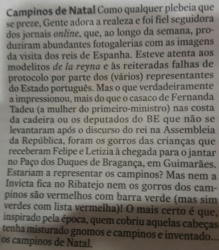 Muito embora saibamos que o cariz de tal coluna não é propriamente jornalístico, servindo antes para comentários e fait divers, oferece-nos clarificar o seguinte: