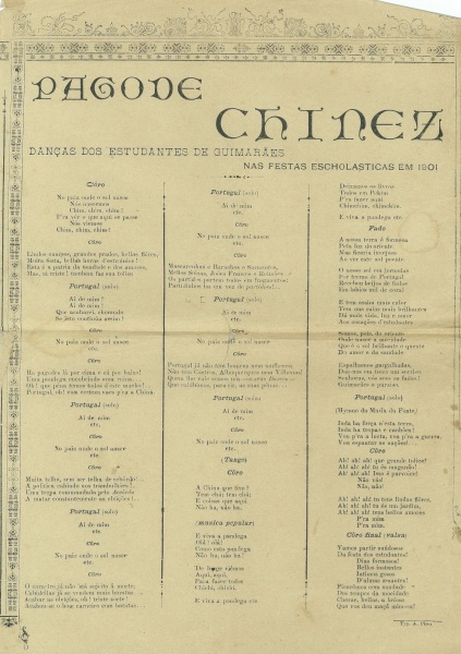 "...No respeitante às «Danças» tratava-se duns folguedos com que as festas eram abrilhantadas e das quaes se colhiam proventos, para cobrir as despezas feitas. No livro de Termos da Irmandade lê-se : «querendo alguém que se lhe fação comedias ou danças, e falando nisso a algum oficial da Meza, esse o fará saber aos mais, etc.. . . » Nada mais se pode precisar com segurança sobre as origens desta festa tam caracteristica, realizada anualmente pelos estudantes de Guimarães." Padre Gaspar Roriz Apontamentos para a história das Danças Nicolinas Estatuto da Irmandade do Séc. XVII indica já num dos seus capítulos a maneira como os estudantes obtinham meios de receita para a festividade. A exploração de Comédias e Danças pelos escholásticos e sua organização possibilitaram a construção da Capela de S. Nicolau anexa à Colegiada e que hoje nos orgulha porque novamente restaurada. Um ato de Justiça que se impunha! As Danças, começaram por ser representadas em cenas publicas, nos Rossios e recantos da Cidade e até no Toural; na Praceta do Convento das Claristas ou nos Pátios e Casas Senhoriais. Em 1738 terminou esta prática empresária de explorar representações criticas e coreográficas. Durante muitos anos as Danças quase que não existiram. É já no nosso século (1954) que, um grupo de Velhos Nicolinos refaz a Tradição das Danças dando origem à criação da Associação dos Antigos Estudantes do Liceu de Guimarães: Antonino Dias Pinto de Castro, Aristião Campos, Alexandre Rodrigues, Hélder Rocha, António Faria Martins, António Monteiro e o Velho Passos Armador, são os pioneiros desta aventura Nicolina. Honra ao mérito! Viva S.Nicolau! Em 1972 recreou-se este número das Danças novamente, que se realizaram no Cineteatro Jordão com muito mérito. As danças tinha sido apresentadas em anos anteriores de forma avulsa, por grupos de Estudantes. As Danças desta última série de representações criaram figuras que se destacaram pelo contributo às Nicolinas: O Afonso Henriques, A Mumadona, O Alcaide, Bobo, S. Nicolau, Minerva, Gil Vicente, o Povo, as Mulheres, os Coreiros. Um espectáculo somente de homens que se "travestiam” em diferentes personagens e que possuem um ritual de passagem de testemunho, para que a herança nicolina se mantenha viva nas diferentes gerações da Festa. Este ano, novamente haverá passagem de testemunho geracional, nas figuras de Afonso e S. Nicolau. Uma noite de saudável humor, de feérica Sátira Social, de crítica dos acontecimentos do ano na Cidade, com Música dos Trovadores do Cano. Um espetáculo que só acontece em Guimarães-Cidade Património, com cada vez mais aderentes, onde pontifica a Fraternidade Nicolina. Viva S.Nicolau! Fernando C. Miguel/1998