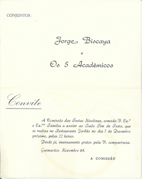 A música de outros tempos, de todos os tempos, paira no ar à mistura com as conversas discretas, as gargalhadas brejeiras e os sorrisos de saudade e dançam-se os Boleros, as Valsas, o Chá-chá-chá, as Rumbas e depois os Slows dos Beatles ou o Rock dos anos 70. Hoje tudo é mais calmo.