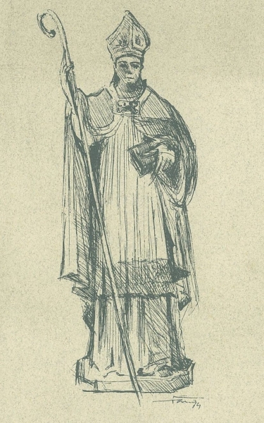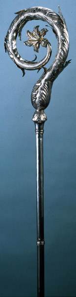 Foi a 28 de Dezembro de 1861, exactamente naquela reunião em que igualmente se resolveu aumentar de 20 o número das medalhas dos Irmãos, que pelo juiz "foi proposto que não tendo o Padroeiro desta Santa Irmandade um Báculo de prata para seu adorno e muito principalmente para o dia da sua festividade, vendo-se a Meza na necessidade de o pedir emprestado, julgava elle juiz que esta Irmandade tendo como tem meios suficientes devia mandar fazer o dito Báculo para adorno e decencia do seu Padroeiro". Aprovada a proposta foi o irmão tesoureiro autorizado a fazer a despesa necessária, aplicando as sobras existentes de contas passadas.