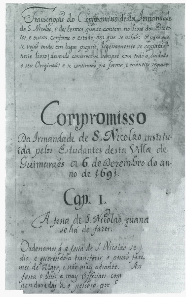Temos, portanto, que em 1663 havia em Guimarães uma corporação religiosa sob a invocação de S. Nicolau que, ainda sem decreto formal de erecção e sem estatutos aprovados, era considerada como Irmandade ou Confraria e como tal organizada, com o seu santo patrono, um local de culto privativo, uma sede própria.