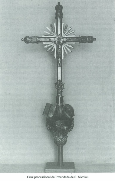 Desde sempre a Irmandade de S.Nicolau teve a sua cruz, como se depreende do compromisso de 1691. Cabia então ao tesoureiro levá-la nas missas dos domingos, e ao mordomo mais novo empunhá-la no acompanhamento dos irmãos falecidos. Ignoramos, contudo, de que material era feita.